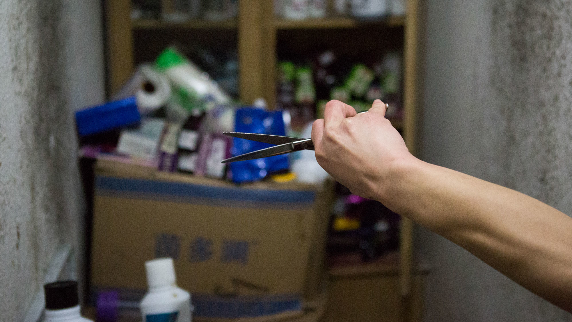 七仔:“我觉得江湖对我来说就是外面的世界。我的世界很简单,每天13个小时都在剪发,剩下的时间看看韩国的时尚动态和最新MV,和哥们一起喝酒唱歌。我们这一行很少有自己的时间,但我的客人就是我了解外面世界的窗口。我们的店在号称宇宙中心五道口的北京语言大学附近,客人基本都是来自世界各地的学生,还有很多老师和教授。无论是什么客人,我都可以和他们聊到一起。记得有一次,一个新疆的客人找我理发,我们聊得很开心,我也知道了很多关于新疆的风土人情,后来他再来北京时专门住在五道口,给我带来了新疆的雪莲,很高的一株,我以前从来没见过,特别的感动!”