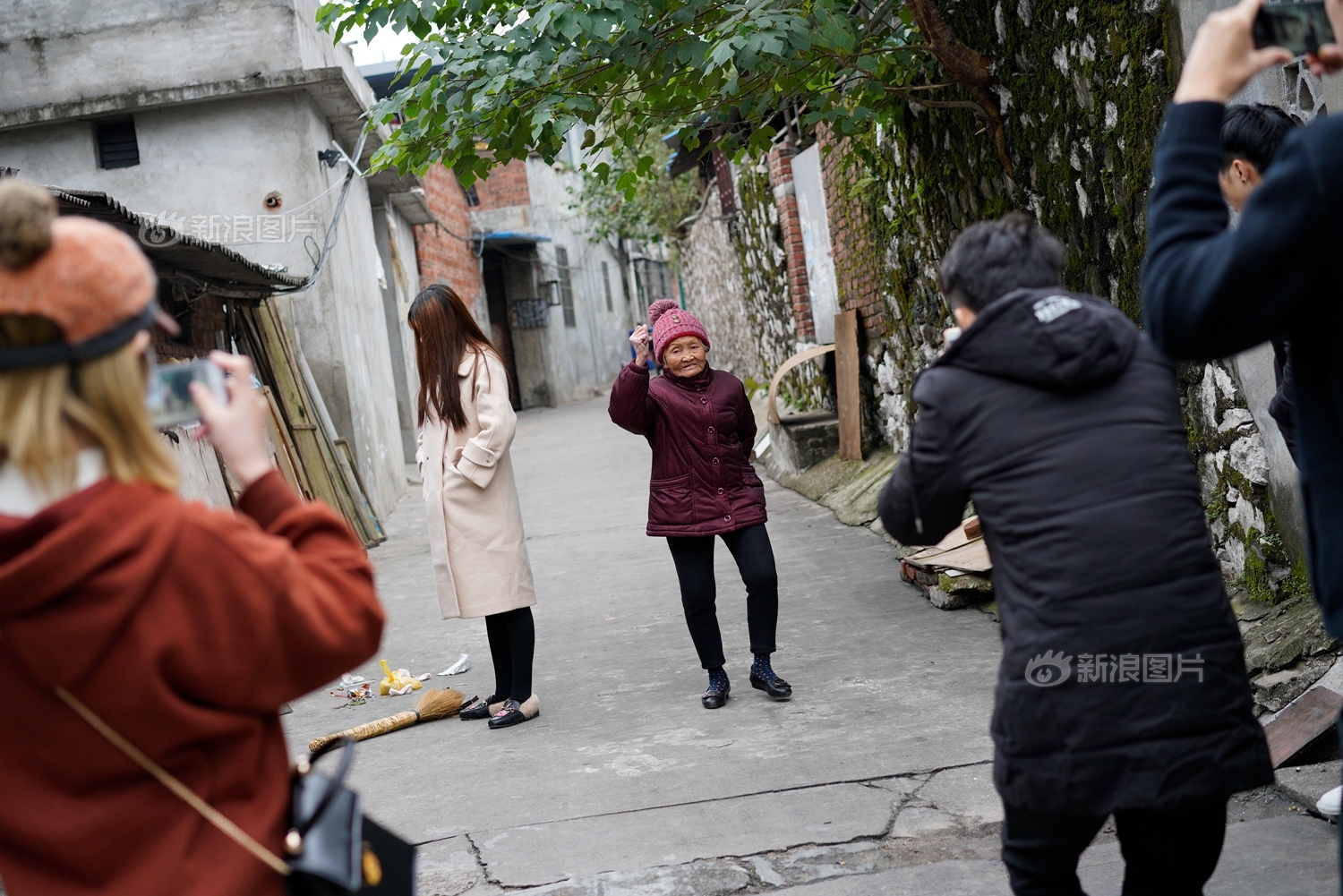 白天韦玉琴与同村其他的老人没有什么不同,在家做做家务,到村口与邻居聊聊天,一到下午,她的生活突然变得丰富起来,为了更好地录制快手视频,自己的孙子阿龙会拿着前一天想好的“剧本”和韦玉琴一起“彩排”,一句简单的台词奶奶往往要反反复复背上几十遍才能记住,记忆力更差的“搭档”覃翠琼则完全记不住任何台词,所以在视频里她总是作为配角出现,“对!对!讲得对!”反倒成为了网友们津津乐道的经典台词,等奶奶们理解了剧情后,阿龙与朋友们就会带着她们去往附近的取景地拍摄,经过几小时的拍摄和后期剪辑后,一条新鲜出炉的“时尚奶奶”快手段子就被上传到了网上,供网友们双击点赞。
