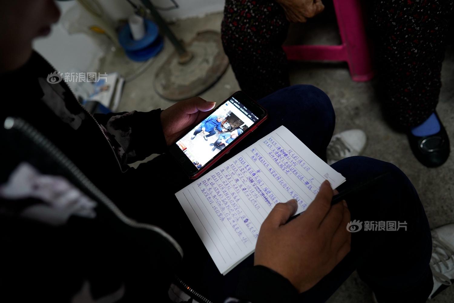 韦玉琴与孙子阿龙拿出准备好的段子剧本进行“彩排”,一段简单的台词韦玉琴需要反反复复背诵好几次才能记住。“我的孙子叫我拍段子,我就拍,我也觉得挺好玩。”韦玉琴参与视频拍摄将近一年,表演已经相当熟练。虽然对于什么是涨粉、老铁、网红和直播,韦玉琴依旧一窍不通。