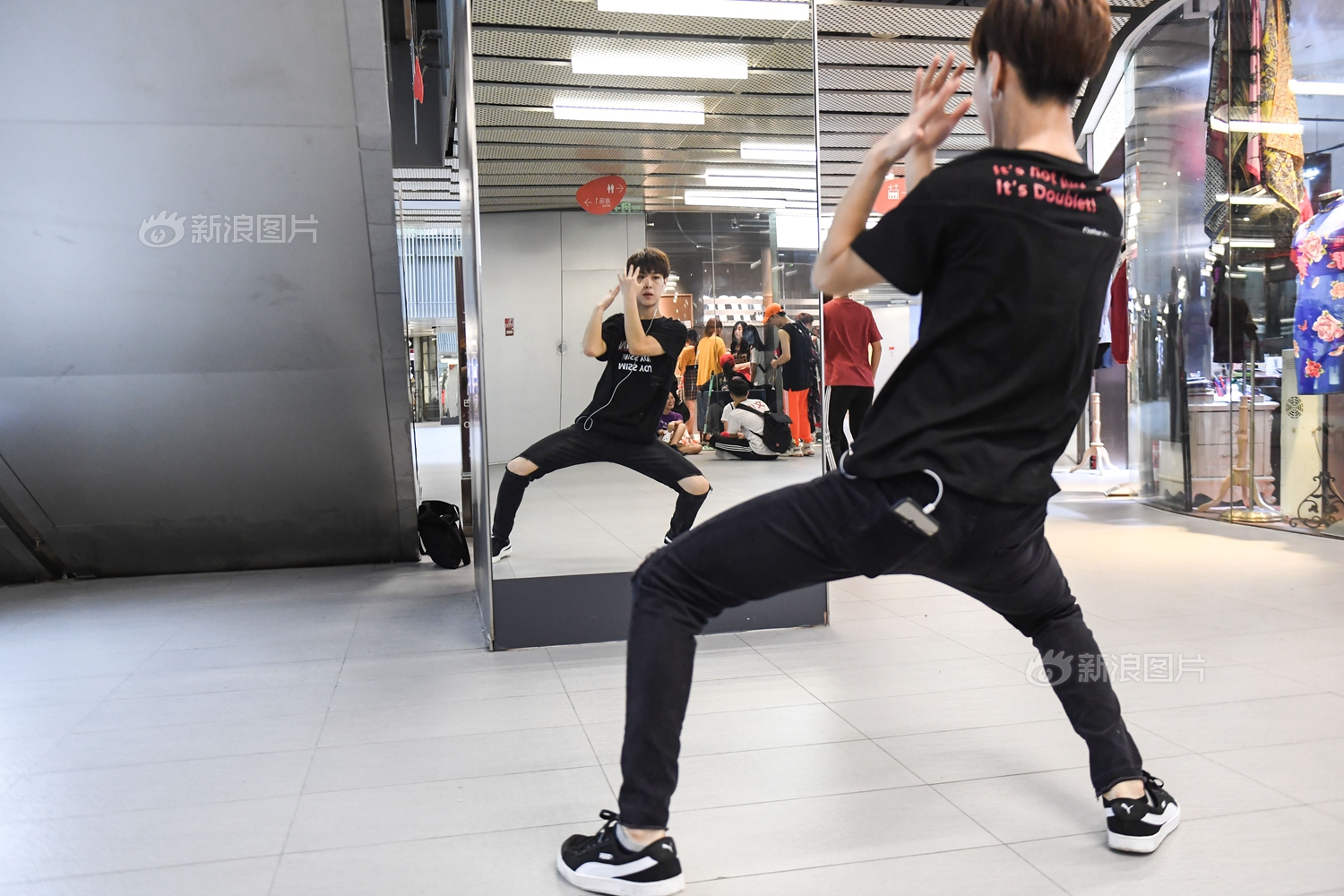段耀奇在公司里并不算很起眼,身形瘦削,这是他在公司外走廊的一面镜子前练习跳舞。段耀奇21岁,他在今年年初放弃了计算机专业大三学生的身份,从老家太原来到北京开始了练习生之路,“只为自己的理想活下去。”
