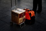 摄影师拍摄火车站旅客手中年货