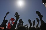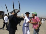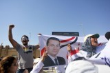 开庭前警察学院门口聚集着穆巴拉克的支持者和反对者