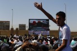 图文:穆巴拉克的反对者在开罗警察学院外集会