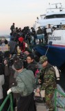 图文:遭到炮击的延坪岛的游客抵达韩国仁川港