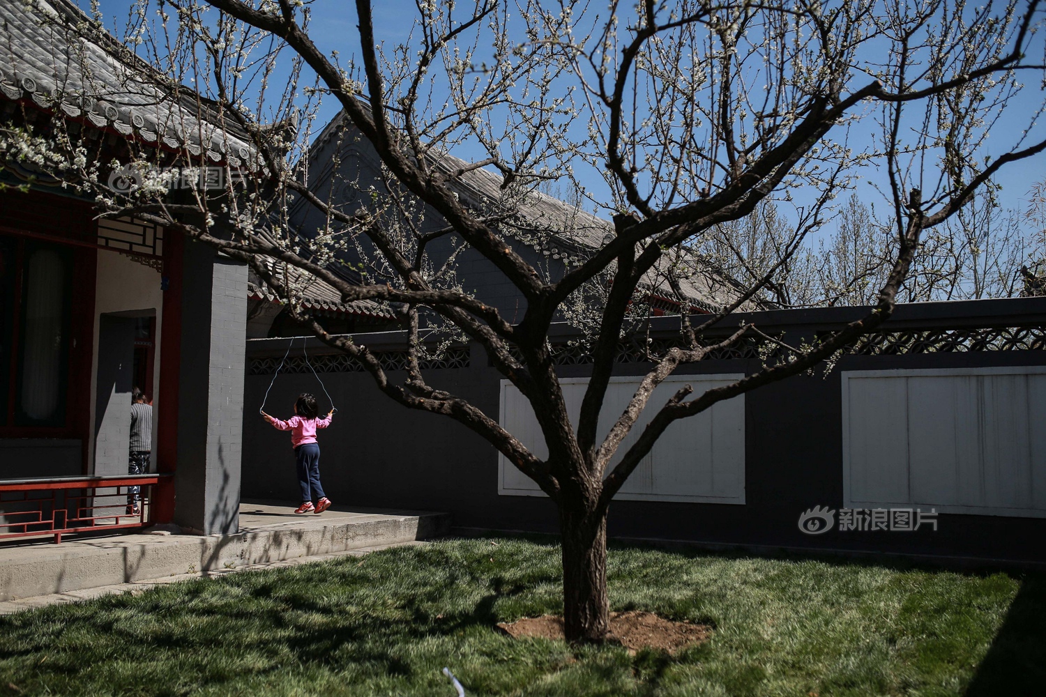 课间,学生在教室旁跳绳玩耍。因为不追求考试成绩,书院的氛围总是比较轻松,没有太大的压力。“定能生慧。”书院的胡老师说,“孩子心神安定,以后再学习知识会很容易”。不过伦伦的妈妈还是在周末为伦伦报了课外的数学、英语辅导班,“毕竟最后都还是要回到体制内的。”