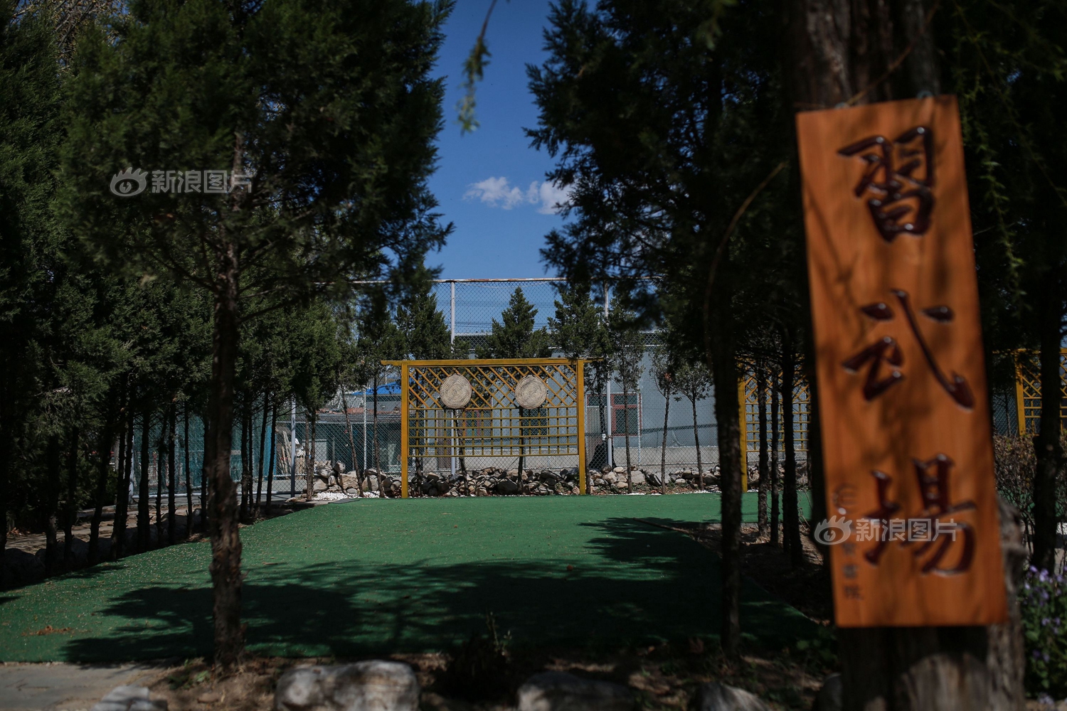 学校的一角有一处“习武场”,木架上挂着几块用草编成的圆形箭靶,供学生们练习射箭使用。1000年前周朝的贵族教育体系将“礼、乐、射、御、书、数”作为六种基本才能,称为“六艺”,其中“射”即指射箭。