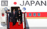 日本首相安倍及夫人抵京参加APEC峰会(图)
