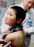 被解救乞讨儿童王西京在手术前接受医生的检查