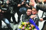 被拐男童一家三口机场团聚 妈妈逢人发喜糖