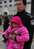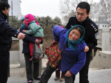 没有来得及跑掉的一名大人和孩子坚决不上警车