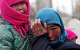 没有来得及跑掉的大人和孩子不停的抹眼泪