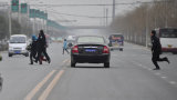 看见警察出现后 乞讨者四散而逃